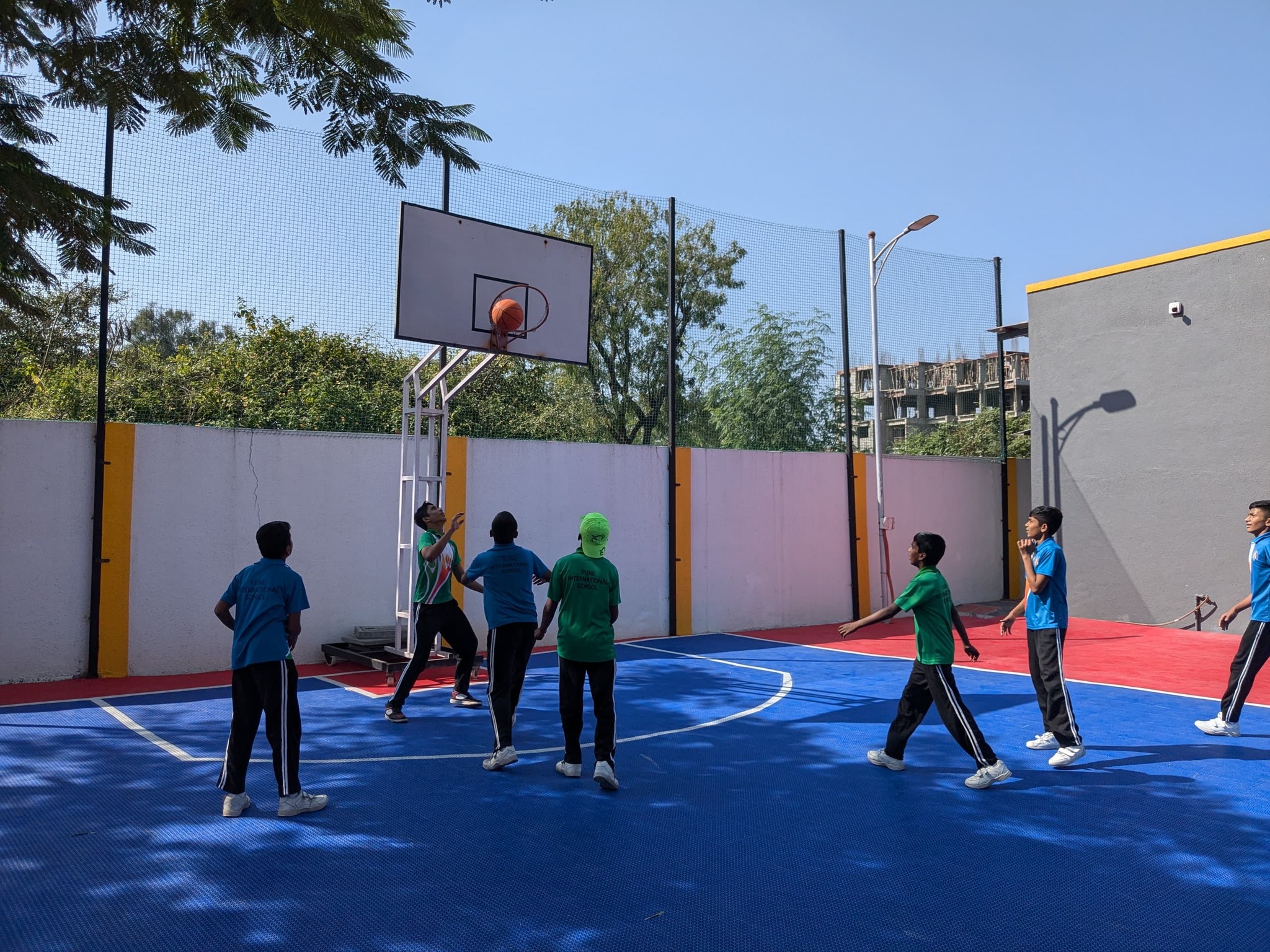 PROFESSIONAL SPORTS COACHES TO MENTOR STUDENTS IN BASKETBALL. PIC. SHOWS BASKETBALL INTERSCHOOL MATCH